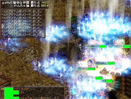 相手の氷雨の中で、お相手の火力様の痛い攻撃が続き支援もいつのまにか切れて一度引きました。アスヒWIZからするといきなりHPガクット減るもんだからあせっちゃいました><;